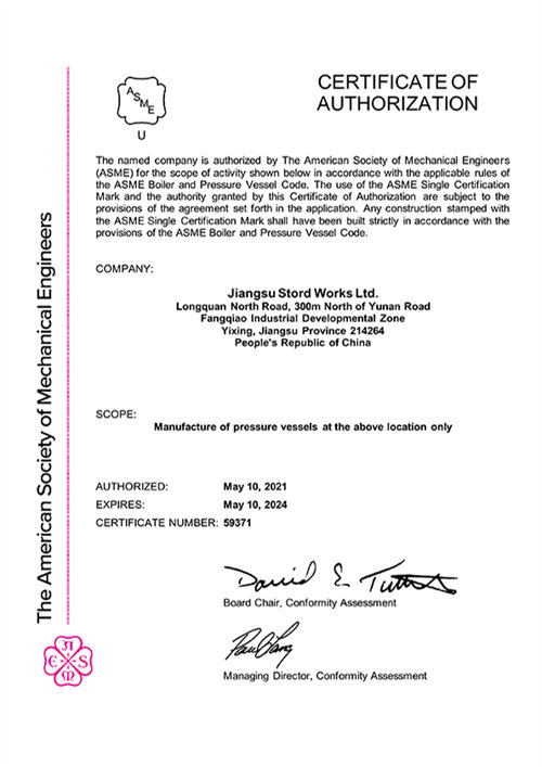 2021-06-21我公司收到美国ASME颁发的U钢印授权和NB认证证书
